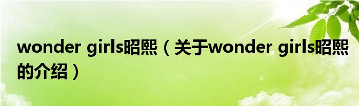 大家好,小安來為大家解答以上的問題。wonder girls昭熙,關(guān)于wonder girls昭熙的介紹很多人還不知道,現(xiàn)在讓我們一起來看看吧!