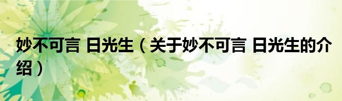 大家好,小安來為大家解答以上的問題。妙不可言 日光生,關于妙不可言 日光生的介紹很多人還不知道,現在讓我們一起來看看吧!
