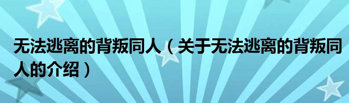 大家好,小安來為大家解答以上的問題。無法逃離的背叛同人,關于無法逃離的背叛同人的介紹很多人還不知道,現在讓我們一起來看看吧!
