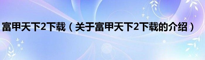 大家好,小安來為大家解答以上的問題。富甲天下2下載,關于富甲天下2下載的介紹很多人還不知道,現在讓我們一起來看看吧!