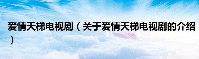 大家好,小安來為大家解答以上的問題。愛情天梯電視劇,關于愛情天梯電視劇的介紹很多人還不知道,現在讓我們一起來看看吧!