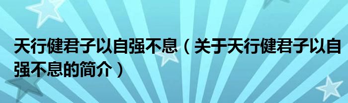 大家好,天行健君子以自強不息,關(guān)于天行健君子以自強不息的簡介很多人還不知道,現(xiàn)在讓我們一起來看看吧!