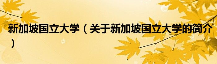 大家好,新加坡國立大學,關于新加坡國立大學的簡介很多人還不知道,現在讓我們一起來看看吧!