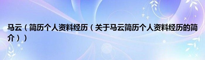 本文關于馬云 簡歷 個人資料經歷的簡介就講解完畢,希望對大家有所幫助。
