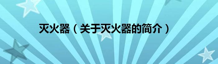 本文關于滅火器的簡介就講解完畢,希望對大家有所幫助。
