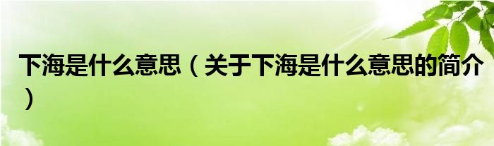 本文關(guān)于下海是什么意思的簡(jiǎn)介就講解完畢,希望對(duì)大家有所幫助。