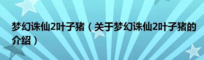 大家好,小安來為大家解答以上的問題。夢幻誅仙2葉子豬,關于夢幻誅仙2葉子豬的介紹很多人還不知道,現在讓我們一起來看看吧!
