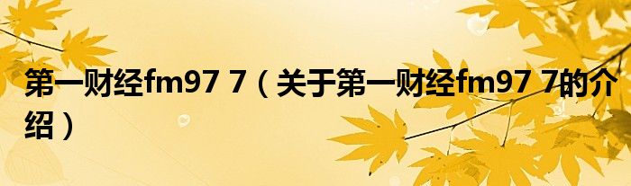大家好,小安來為大家解答以上的問題。第一財經fm97 7,關于第一財經fm97 7的介紹很多人還不知道,現在讓我們一起來看看吧!