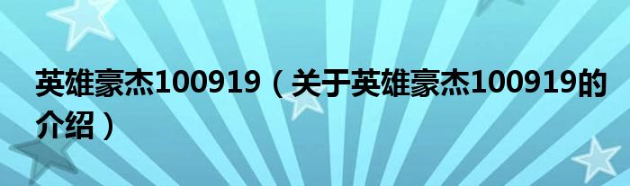 大家好,小安來為大家解答以上的問題。英雄豪杰100919,關于英雄豪杰100919的介紹很多人還不知道,現在讓我們一起來看看吧!