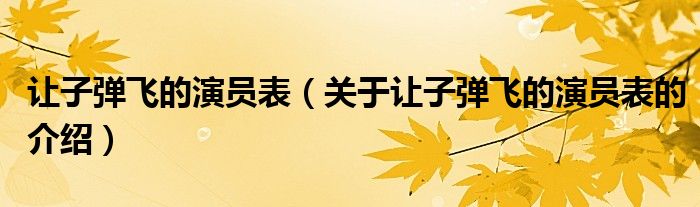 大家好,小安來為大家解答以上的問題。讓子彈飛的演員表,關(guān)于讓子彈飛的演員表的介紹很多人還不知道,現(xiàn)在讓我們一起來看看吧!