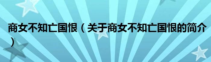 本文關于商女不知亡國恨的簡介就講解完畢,希望對大家有所幫助。