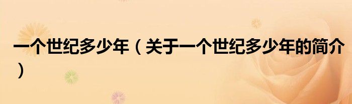 本文關(guān)于一個(gè)世紀(jì)多少年的簡(jiǎn)介就講解完畢,希望對(duì)大家有所幫助。