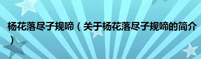 本文關(guān)于楊花落盡子規(guī)啼的簡介就講解完畢,希望對大家有所幫助。