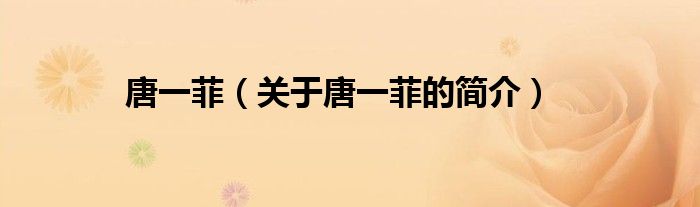 大家好,唐一菲,關于唐一菲的簡介很多人還不知道,現在讓我們一起來看看吧!