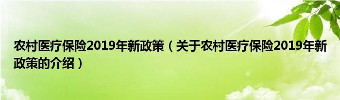 大家好,小安來為大家解答以上的問題。農村醫療保險2019年新政策,關于農村醫療保險2019年新政策的介紹很多人還不知道,現在讓我們一起來看看吧!