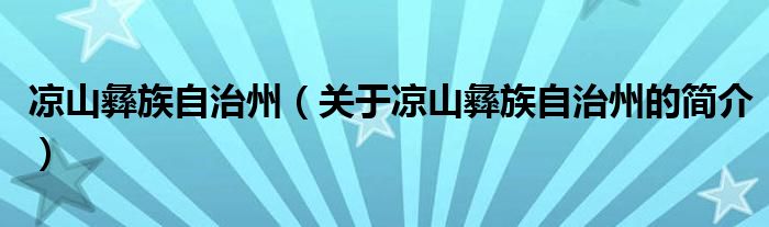 本文關于涼山彝族自治州的簡介就講解完畢,希望對大家有所幫助。