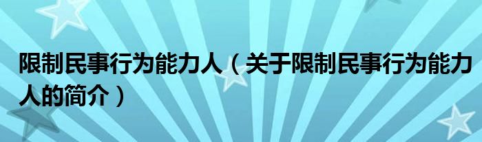 本文關于限制民事行為能力人的簡介就講解完畢,希望對大家有所幫助。