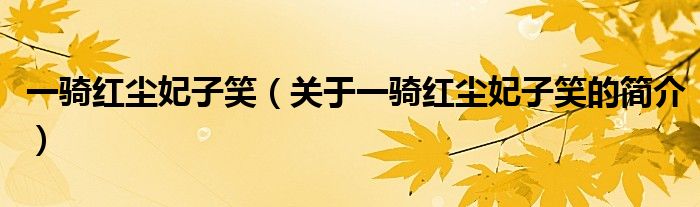 本文關(guān)于一騎紅塵妃子笑的簡(jiǎn)介就講解完畢,希望對(duì)大家有所幫助。