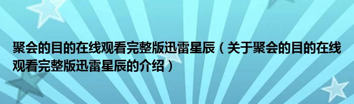 大家好,小安來(lái)為大家解答以上的問題。聚會(huì)的目的在線觀看完整版迅雷星辰,關(guān)于聚會(huì)的目的在線觀看完整版迅雷星辰的介紹很多人還不知道,現(xiàn)在讓我們一起來(lái)看看吧!