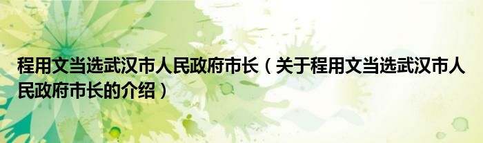 大家好,小安來為大家解答以上的問題。程用文當選武漢市人民政府市長,關于程用文當選武漢市人民政府市長的介紹很多人還不知道,現在讓我們一起來看看吧!