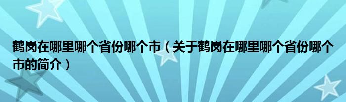 本文關于鶴崗在哪里哪個省份哪個市的簡介就講解完畢,希望對大家有所幫助。