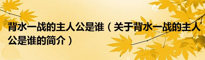 本文關于背水一戰的主人公是誰的簡介就講解完畢,希望對大家有所幫助。