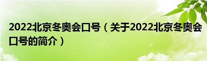 本文關于2022北京冬奧會口號的簡介就講解完畢,希望對大家有所幫助。