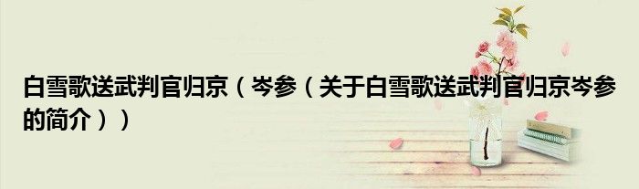 本文關于白雪歌送武判官歸京 岑參的簡介就講解完畢,希望對大家有所幫助。