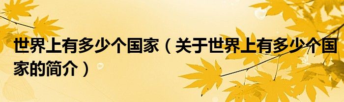 本文關于世界上有多少個國家的簡介就講解完畢,希望對大家有所幫助。