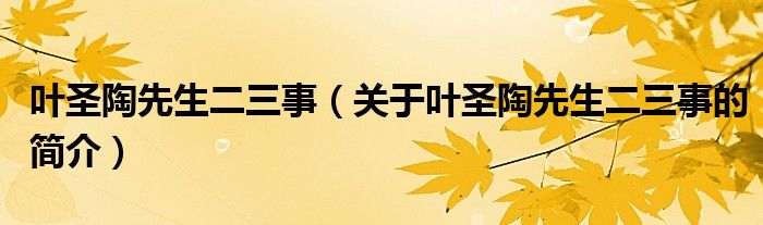 本文關于葉圣陶先生二三事的簡介就講解完畢,希望對大家有所幫助。