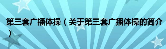大家好,第三套廣播體操,關(guān)于第三套廣播體操的簡介很多人還不知道,現(xiàn)在讓我們一起來看看吧!