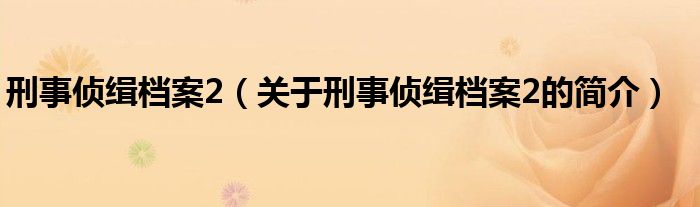 大家好,刑事偵緝檔案2,關于刑事偵緝檔案2的簡介很多人還不知道,現在讓我們一起來看看吧!