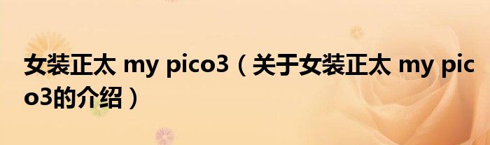 大家好,小安來為大家解答以上的問題。女裝正太 my pico3,關(guān)于女裝正太 my pico3的介紹很多人還不知道,現(xiàn)在讓我們一起來看看吧!