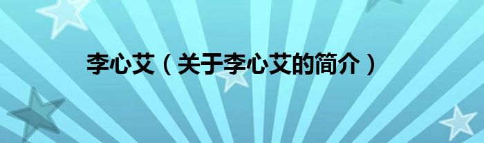 本文關(guān)于李心艾的簡(jiǎn)介就講解完畢,希望對(duì)大家有所幫助。
