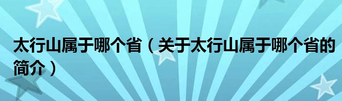 本文關于太行山屬于哪個省的簡介就講解完畢,希望對大家有所幫助。