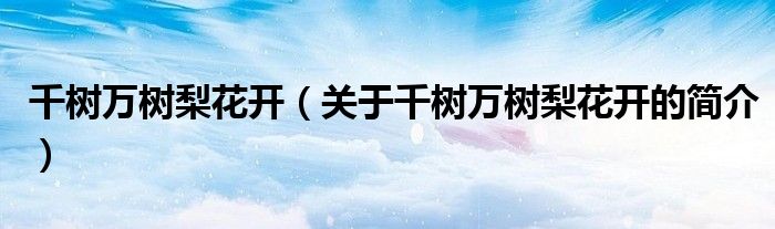 大家好,千樹萬樹梨花開,關于千樹萬樹梨花開的簡介很多人還不知道,現在讓我們一起來看看吧!