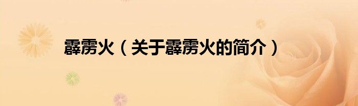 本文關于霹靂火的簡介就講解完畢,希望對大家有所幫助。