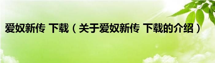 大家好,小安來為大家解答以上的問題。愛奴新傳 下載,關(guān)于愛奴新傳 下載的介紹很多人還不知道,現(xiàn)在讓我們一起來看看吧!