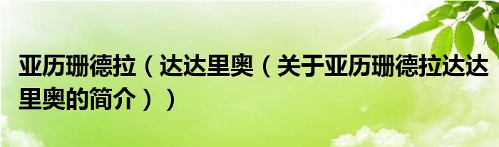 本文關于亞歷珊德拉 達達里奧的簡介就講解完畢,希望對大家有所幫助。