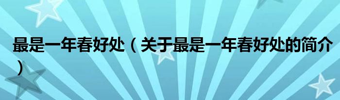 大家好,最是一年春好處,關于最是一年春好處的簡介很多人還不知道,現在讓我們一起來看看吧!