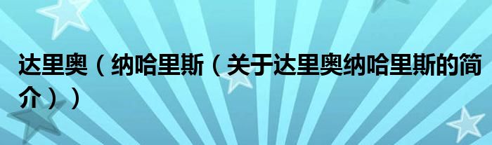 大家好,達里奧 納哈里斯,關于達里奧 納哈里斯的簡介很多人還不知道,現在讓我們一起來看看吧!