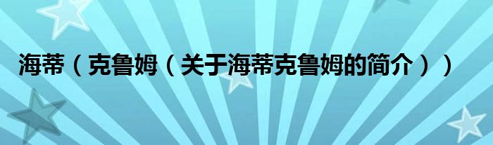 本文關(guān)于海蒂 克魯姆的簡介就講解完畢,希望對大家有所幫助。