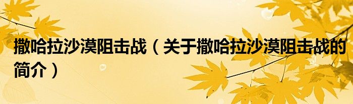 本文關(guān)于撒哈拉沙漠阻擊戰(zhàn)的簡介就講解完畢,希望對大家有所幫助。