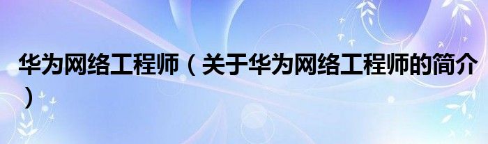 大家好,華為網絡工程師,關于華為網絡工程師的簡介很多人還不知道,現在讓我們一起來看看吧!