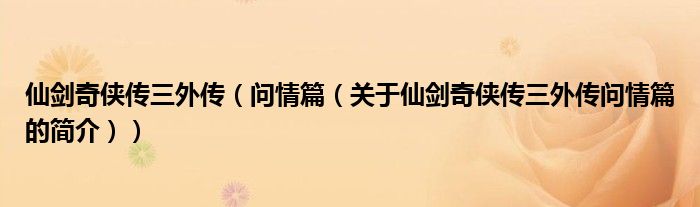 本文關(guān)于仙劍奇?zhèn)b傳三外傳 問情篇的簡介就講解完畢,希望對大家有所幫助。