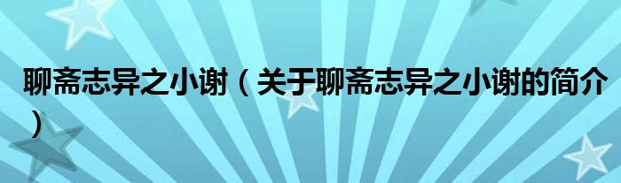 本文關(guān)于聊齋志異之小謝的簡(jiǎn)介就講解完畢,希望對(duì)大家有所幫助。
