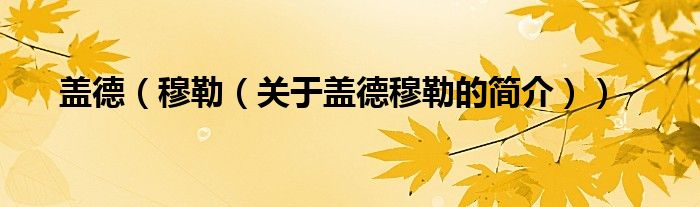 大家好,蓋德 穆勒,關于蓋德 穆勒的簡介很多人還不知道,現在讓我們一起來看看吧!