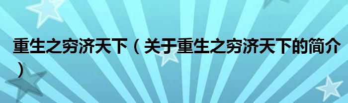 大家好,重生之窮濟天下,關于重生之窮濟天下的簡介很多人還不知道,現在讓我們一起來看看吧!