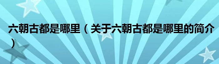 本文關于六朝古都是哪里的簡介就講解完畢,希望對大家有所幫助。