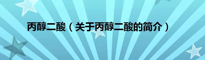 本文關(guān)于丙醇二酸的簡(jiǎn)介就講解完畢,希望對(duì)大家有所幫助。